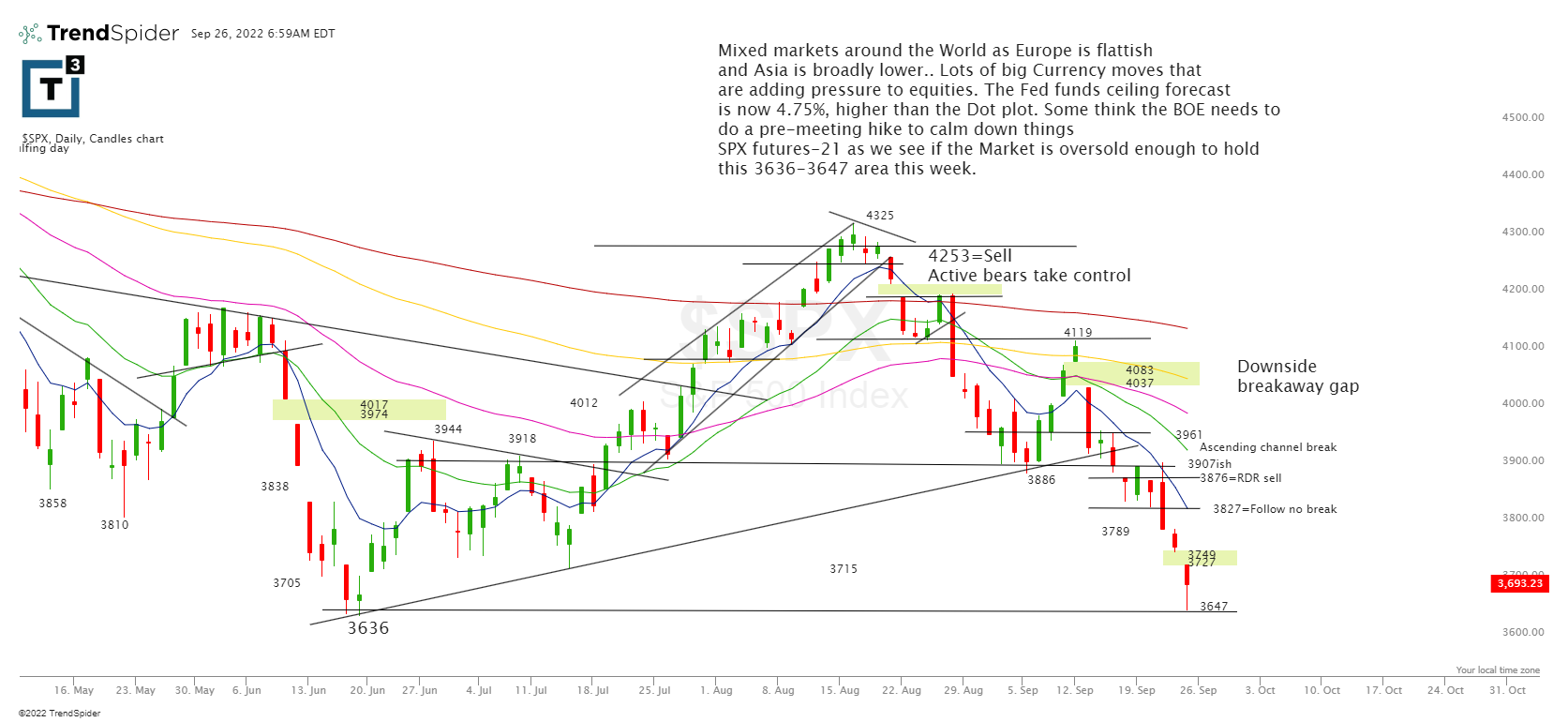 We have mixed markets around the world as Europe is flattish and Asia is broadly lower. Lots of currency moves are adding pressure to equities. The Fed funds ceiling forecast is now 4.75%, higher than the Dot Plot. Some think the BOE needs to do a pre-meeting hike to calm things down.