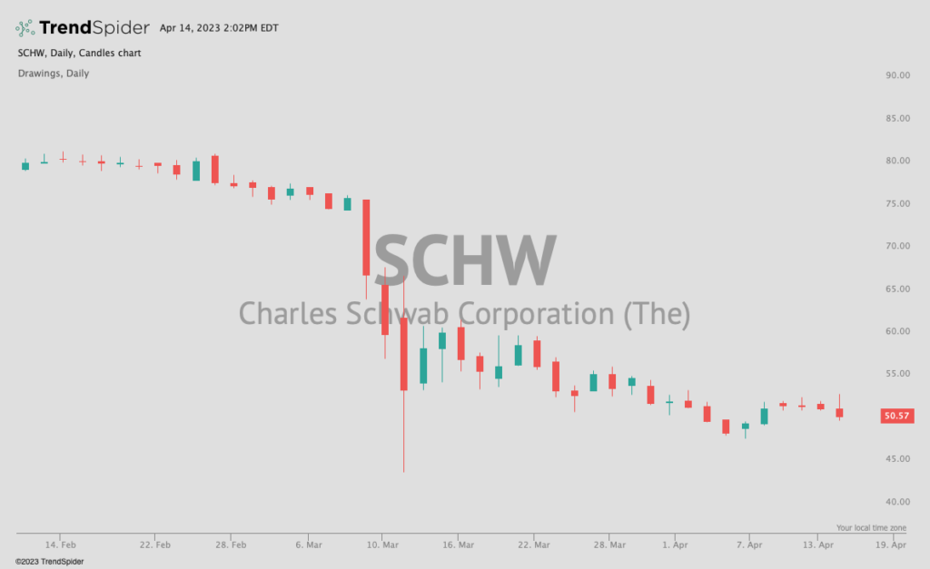 The options market is pricing in a ~9% move in SCHW next week. Given the uncertainty, we could see such a move.