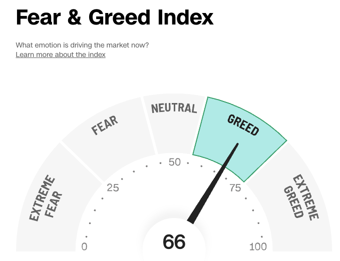 But CNN's Fear & Greed Index shows that traders are greedy: