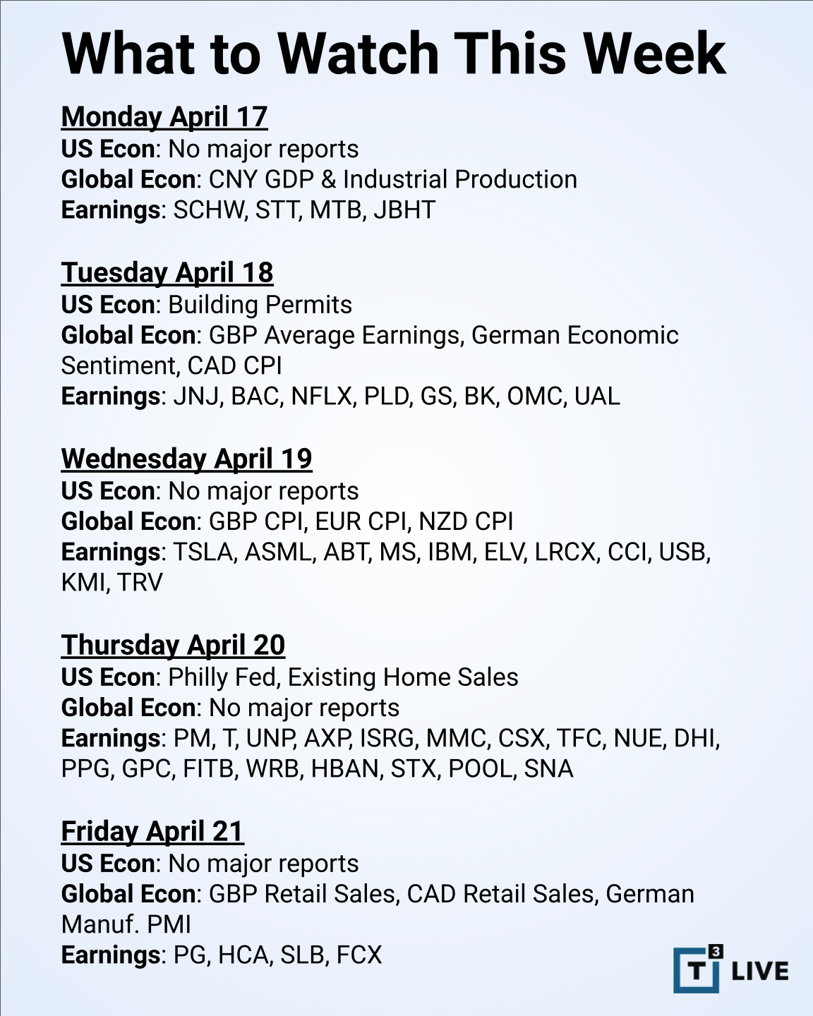 Now let's look at what's ahead this coming week.