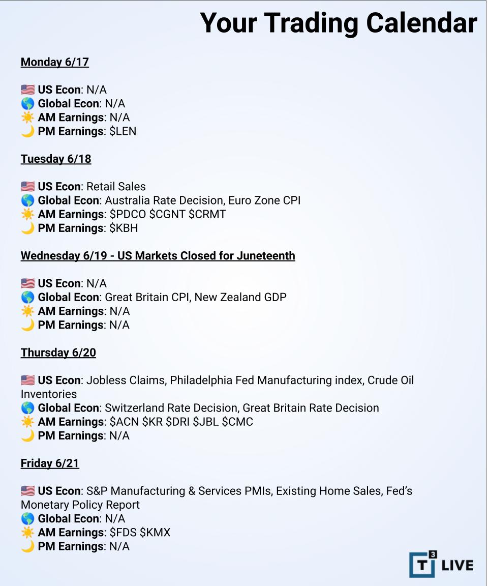SPX futures are -5 as we see if 5402 holds or if they shake the tree this week. The trade is very narrow. There is some concern about rebalancing to end the second quarter, so stay on your toes. The recent SPX high is 5447.