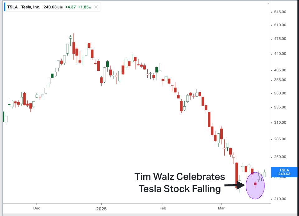 But Minnesota Governor and former VP candidate Tim Walz took the other side of the trade by cheering Tesla's slide off the highs: