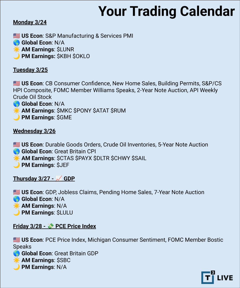 So let's dig into 10 Things Traders Need to Know Next Week. Click the calendar for an events listing: