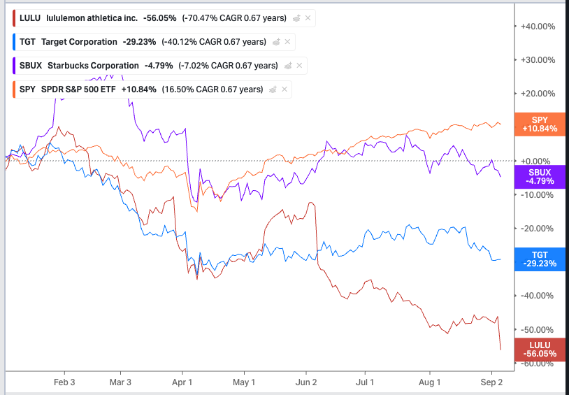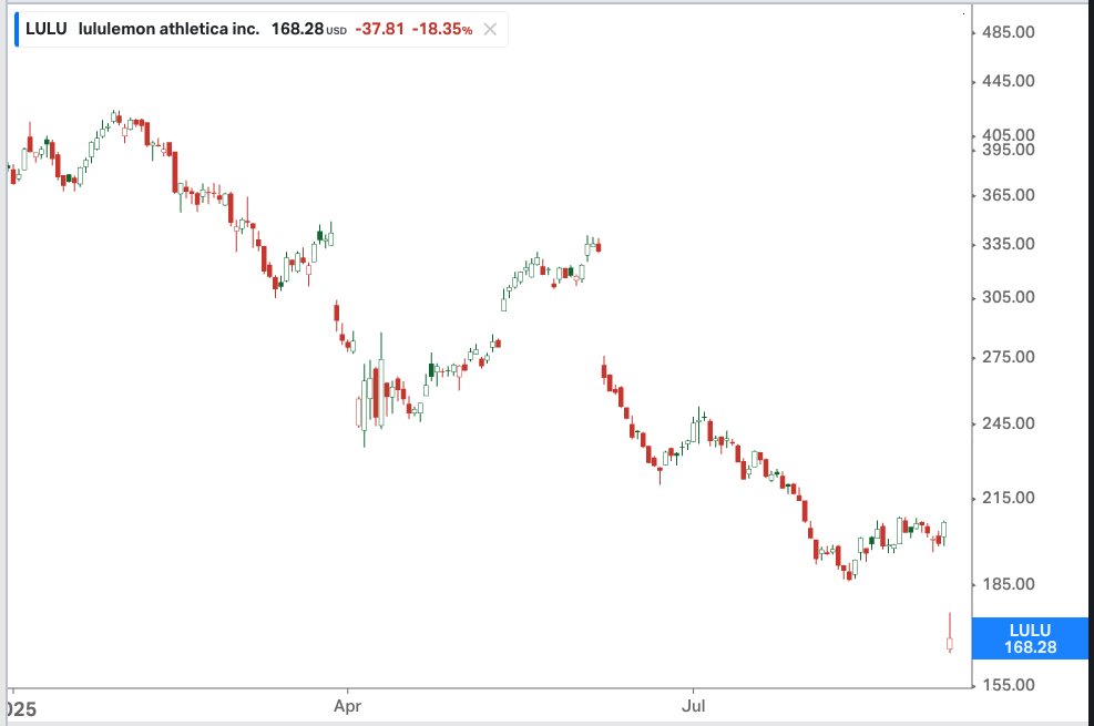 Lululemon (LULU) has been in freefall all year, and got destroyed on Friday after cutting guidance again.
