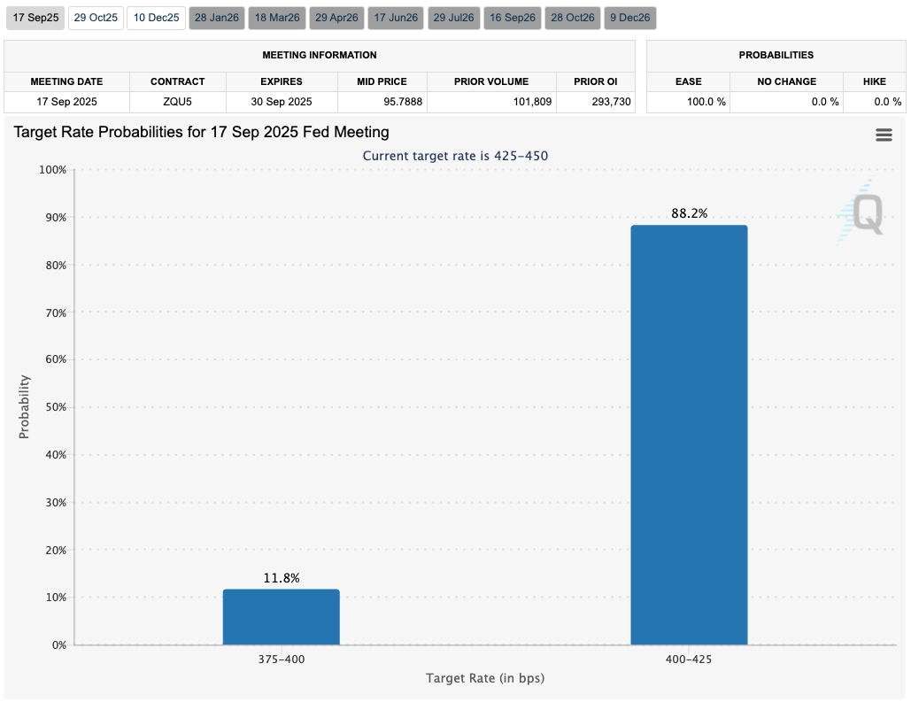 And immediately, traders started pricing a 100% probability of a September rate cut, with an 11.8% chance of a 50 bps cut, according to the CME's Fedwatch tool.