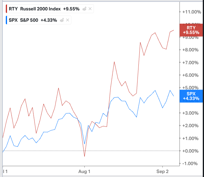 And the Russell 2000 is now up 9.6% in Q3, more than doubling the SPX's performance.