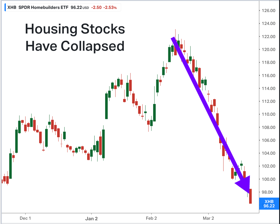 Housing stocks sniffed this out because they've been in a nasty downtrend for the past 6 weeks: